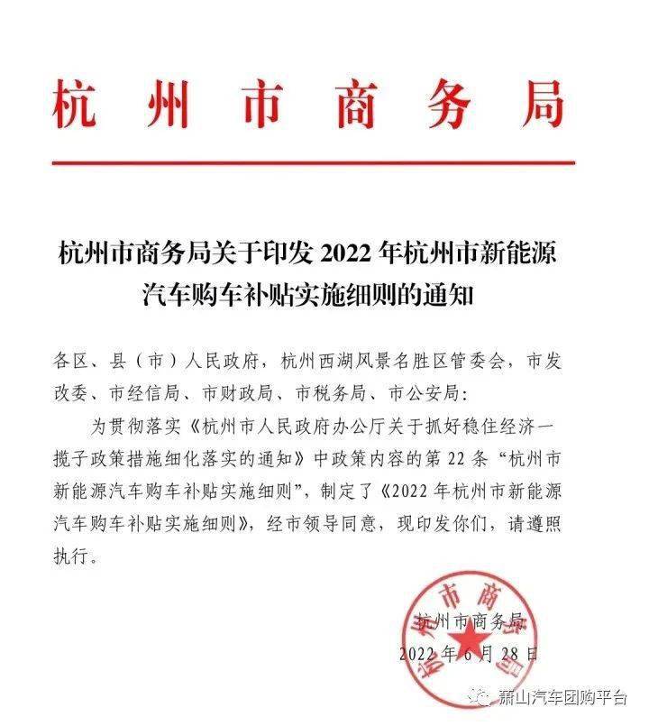 天今,州市新能流汽车购车补助实施细则》杭州市商务局印发《2022 年杭,流汽车补助政策反式落地令此前传说风闻未久的新能。