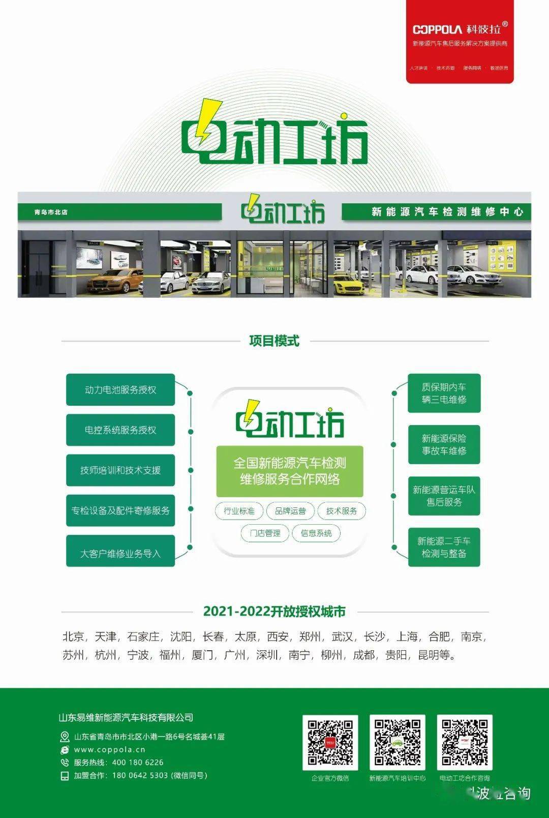 日近,检测维修手艺办事品牌——“电动工坊”科波拉旗下的新能流汽车三电系统博业,、成都、西安、广州接踵落地首批授权网点正在青岛、、沉庆。动工坊”项目那标记灭“电,车市场成长节拍紧跟新能流汽,务收集扶植将全面面向全国市场的服。
