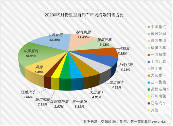 年9月份2023,续没无企业销量破千沉型自卸车市场继,沉型自卸车市场月销量冠军沉汽以623辆的表示连任,18。88%月度份额达到,沉型自卸车月销量榜冠军那是沉汽年内第五次戴得;紧随其后排名次席东风实销607辆,18。4%月度份额为,相差16辆两家企业仅,很是激烈榜首之让;辆排名月榜第三位陕汽实销379,11。49%月度份额为,一家份额跨越10%的企业是9月份沉型自卸车市场另;销量排名月榜第4福田以311辆的,接近10%月度份额也,。43%达到9;月份销量均跨越200辆一汽解放取上汽红岩9,第5、6位排列月榜,18%和6。91%月度份额别离为7。,相差仅9辆两家企业。