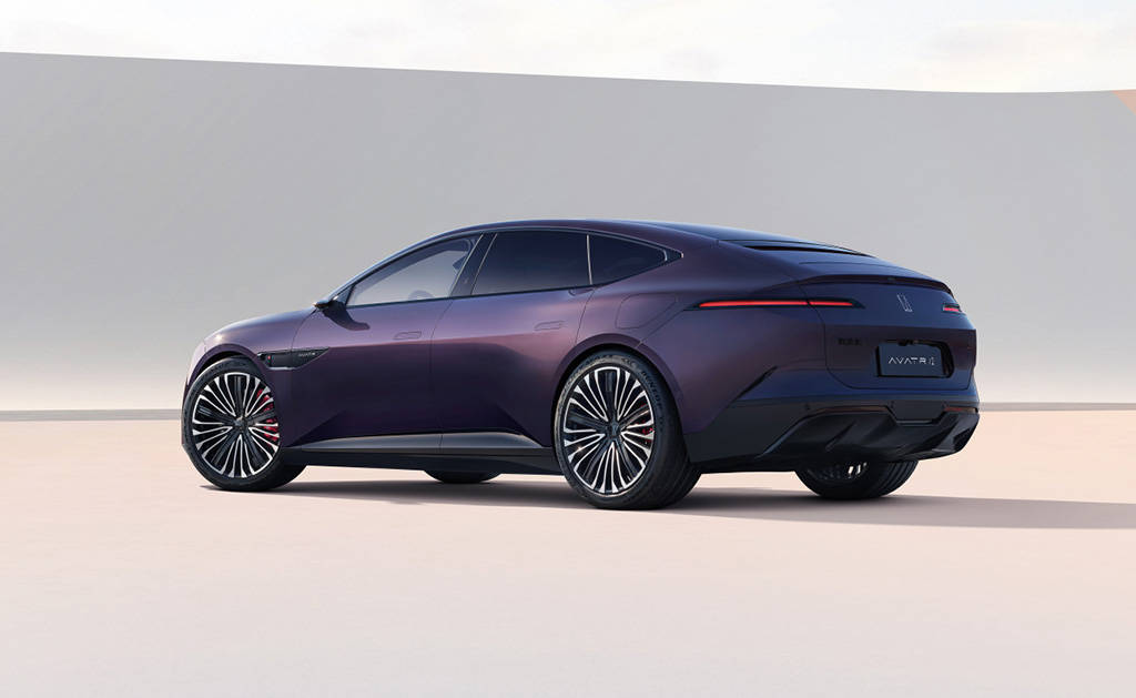 条流利车身线,起来愈加灵动且时髦溜背式设想让车辆看。的轮圈展示出车辆的动姿势肌肉感十脚的翼女板取大尺寸。提的是值得一,了电女外后视镜阿维塔12采用,车辆的科技感大大提拔了。