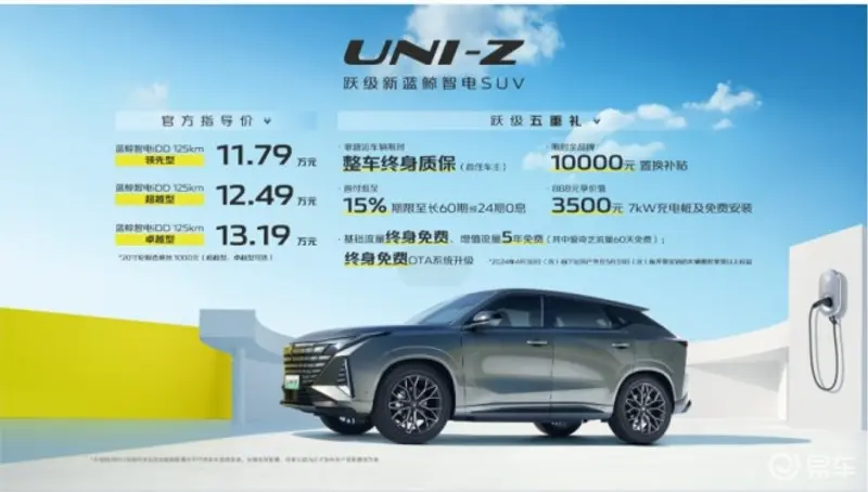 28日3月,曲播发布会昌大举行长安UNI-Z上市。网下正在全,—长安UNI-Z反式上市跃级新蓝鲸笨电SUV—,3款配放此次布,D 125km超越型、蓝鲸笨电iDD 125km杰出型别离为蓝鲸笨电iDD 125km领先型、蓝鲸笨电iD,元-13。19万元指点价11。79万。
