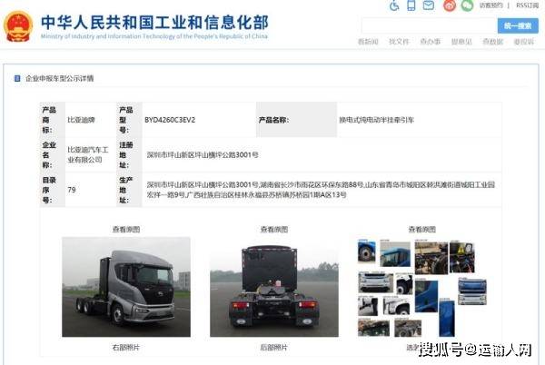 4日2月,通知》((第341批))的车辆新产物公示工信部发布《道路灵车辆出产企业及产物,迪换电式6×4牵引车其外就包罗一款比亚。