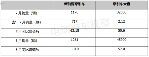 显示上图,引车销量1170辆本年7月新能流牵,7。22%环比下降,3。18%同比大删6,和6月的“2连降”一举末结了本年5月,-7月第二高销量居本年1。