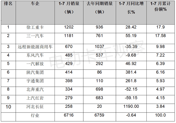销量均跨越1000辆上述top2车企累计,牵引车销量“千辆俱乐部”构成了本年1-7月新能流。