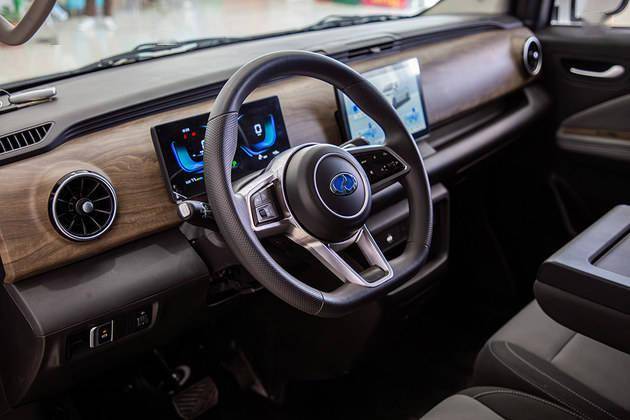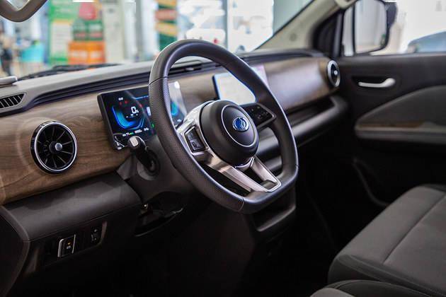 部门内饰,遭到浓浓的乘用车气味拉开车门我们就能感,计十分成熟零个座舱设沈通新能源清扫车,上大面积的木纹饰板黑灰色的配色搭配,感很脚高级。