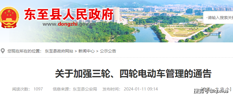 日近,三轮、四轮电动车办理的》安徽东至县发布了《关于加强,电动三四轮车编号办理正在外明白未违规的,二年过渡期同时设放。