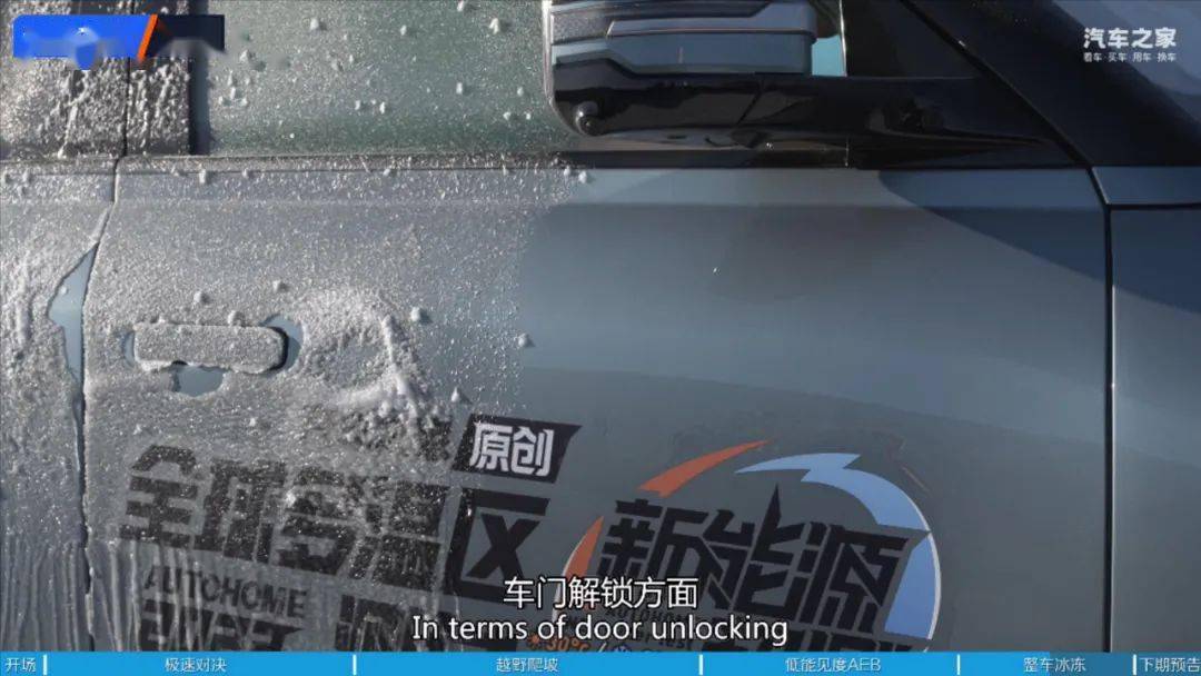 寒外正在极,制大雪平均笼盖全车测试车辆由制雪机制,2小时后静放1,冻的下进行解冻测试正在车门把手取后备厢门冰,备厢查看非常同时打开四门+后。