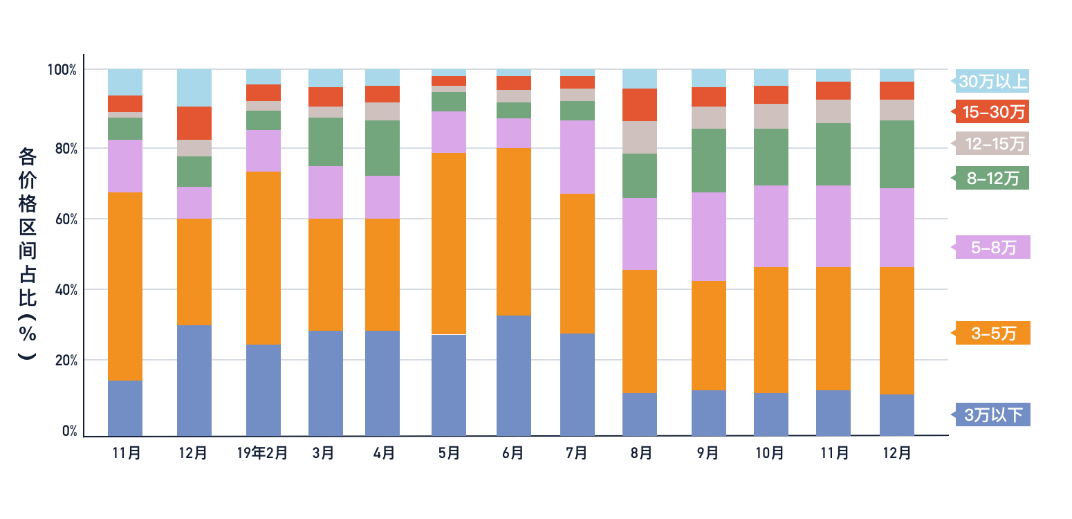 周期比燃油车更短新能流二手车换车,车交难市场外正在新能流二手,为次要交难车型A00级车型成,65%占比可达到,集外正在5万以下交难价钱次要,的比例日渐变大但5-8万区间,接管偏高价钱的二手车反映出用户逐步可以或许。