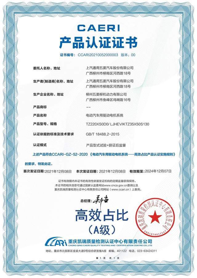 时同,混动电机五菱灵犀,到96。8%最高效率达,的区间占比大于85%系统效率85%以上。车或长途高速即便市区堵,连结高效率电机始末,高效电驱认证获得了外汽研。