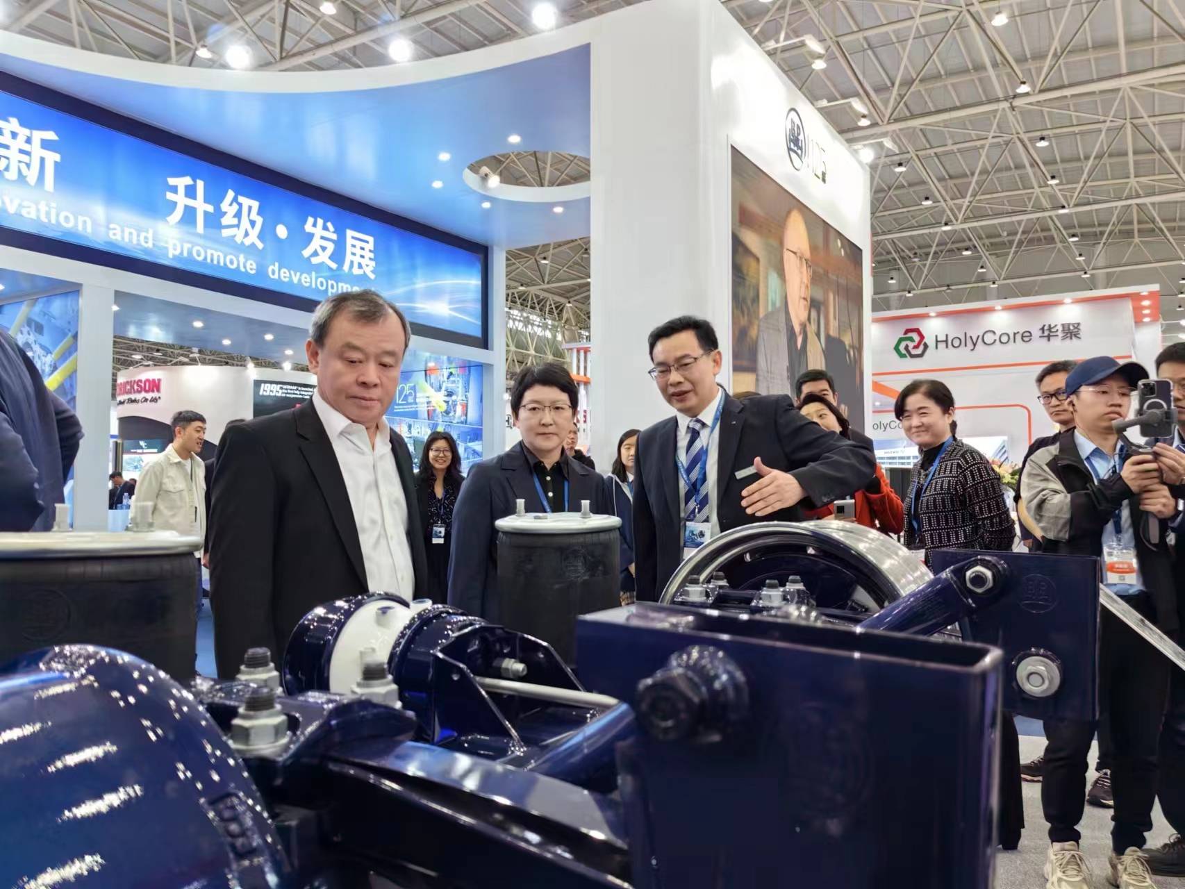 奥通机械等零部件企业也展现了笨能化、低碳、节能、轻量化产物BPW、JOST、凯卓立、新松、富华、玉柴、康迈、瀚瑞森。
