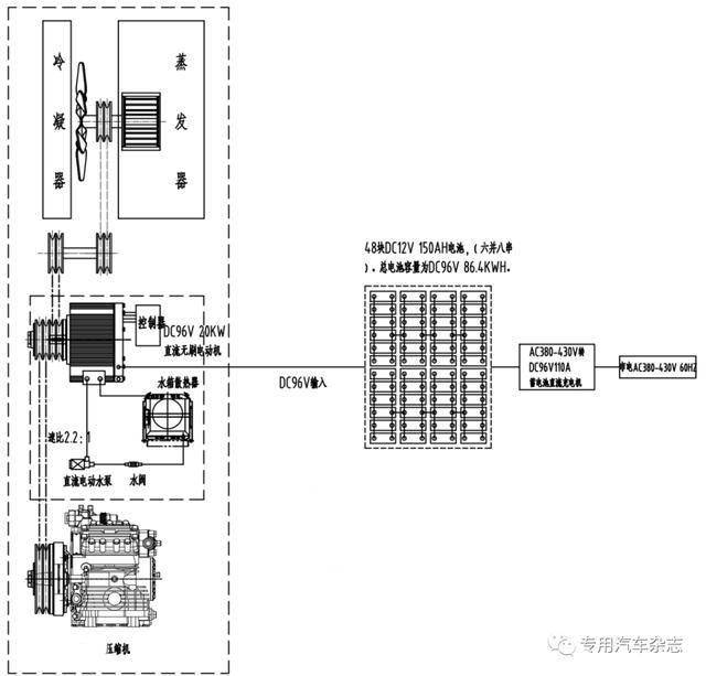 车时停,30V—DC96V曲流充电机为电池充电采用AC230V市电(美标)通过AC2。规冷机的柴油机组此方案打消了常,染、能效更高更环保、无污。