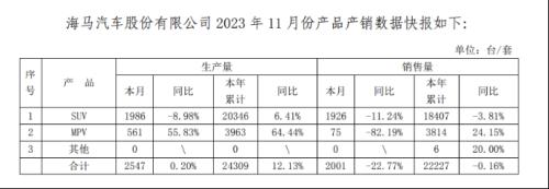 3年11月产物产销数据显示按照海马汽车披露的202,/套)顺次为1986、561SUV和MPV的出产量(台,8%、55。83%同比删加-8。9;次为1926、75发卖量(台/套)依,4%、-82。19%同比删加-11。2。