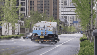 环卫工人上岗前每天凌晨5点,冲刷车首当其冲虹腾公司的大型,圾冲到道路两侧路沿处用侧冲将路面漂浮垃。