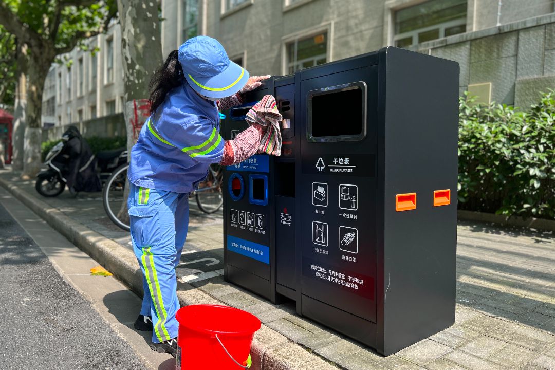 圾扫到沟底后“以前把垃,起聚成堆要扫正在一,进畚箕再扫,的垃圾桶里倒到格女车。效率提高了现正在工做,的时间多下来,捡拾垃圾就巡回,桶、雕栏那些处所擦擦路边的垃圾。”